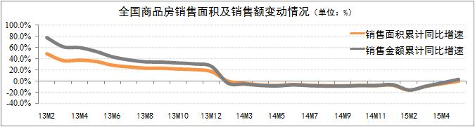 發(fā)稿時(shí)間:2015-06-15全國商品房銷售市場明顯回暖。國家統(tǒng)計(jì)局統(tǒng)計(jì)數(shù)據(jù)顯示:5月份全國商品房銷售面積累計(jì)增速同比下降0.2%,降幅環(huán)比收窄4.6個(gè)百分點(diǎn);銷售額實(shí)現(xiàn)2014年初以來首次正增長,累計(jì)同比增速為3.1%。銷售市場回暖主要體現(xiàn)在40個(gè)重點(diǎn)城市,非重點(diǎn)城市的投資開發(fā)及銷售增速仍呈現(xiàn)下滑趨勢。研究認(rèn)為,銷售市場回暖的主要原因在于國家政策調(diào)控作用引導(dǎo)了市場預(yù)期的轉(zhuǎn)變。